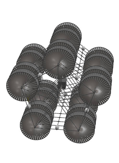 The space frame is a lightweight structural system that supports and aligns the turbines within the module
